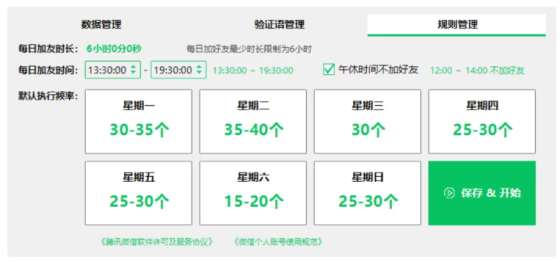 2. 中期强化 核心目标:逐步增加活跃度,适配RPA规则。 单时段间隔≥30分钟,全天总量≤15 人。 深度清洗:企业微信检测。 恢复后添加量降至50%,并延长间隔时间。 内容合规:广告内容占比≤20%,禁止群发营销信息。 3. RPA与人工结合 添加后24小时内发送友好问候。 定期清理无效好友。