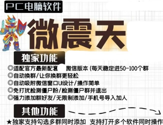 尤其对于企业主、微商从业者、社群运营者、电商卖家以及内容创作者而言,微信群的高效管理与好友关系的精细化维护,早已成为日常工作中不可或缺的刚需环节。微震天的核心竞争力,源于其对微信官方协议的深度理解与技术适配能力。