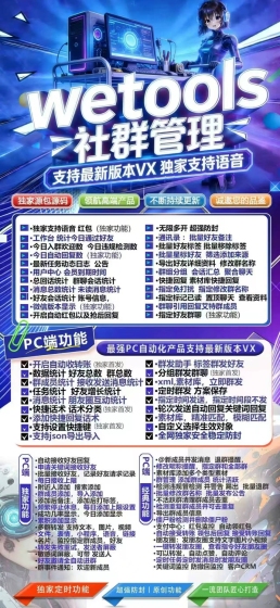 24小时自助发卡商城*久网址:5a6.cn手机端安卓苹果辅助软件商城*久网址:55a6.cnWeTool企业版是专为企业级用户打造的**安全稳定、功能完备、纯净无害**的微信社群运营利器,凭借其卓越的技术实力与用户至上的服务理念,已成为PC端最强社群营销软件之一。