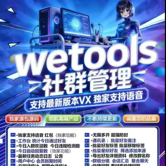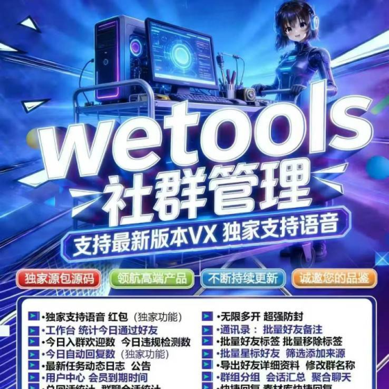 专注高端·自主研发wetools所有功能模块均为100%原创开发,不依赖Hook或注入技术,底层基于深度协议解析与合规交互逻辑设计,兼顾功能性与稳定性。立即体验行业领先的微信社群智能运营力——下载地址:https://www.yuque.com/nimingkeji/eqbcft/saxp7cggcwk9srnm?singleDoc#如需技术支持或定制化方案,请及时联系官方客服。