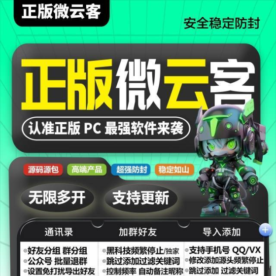 万群同步与高效转发:突破单群限制,实现**跨万级微信群内容同步分发**,支持文字、图片、视频、文件、名片、表情、链接、小程序等全格式内容一键转发,大幅提升信息触达效率。微云客官方正版坚持**长期稳定、安全合规、持续迭代**原则,已通过多重实名认证与服务器加密部署,适配最新微信版本。