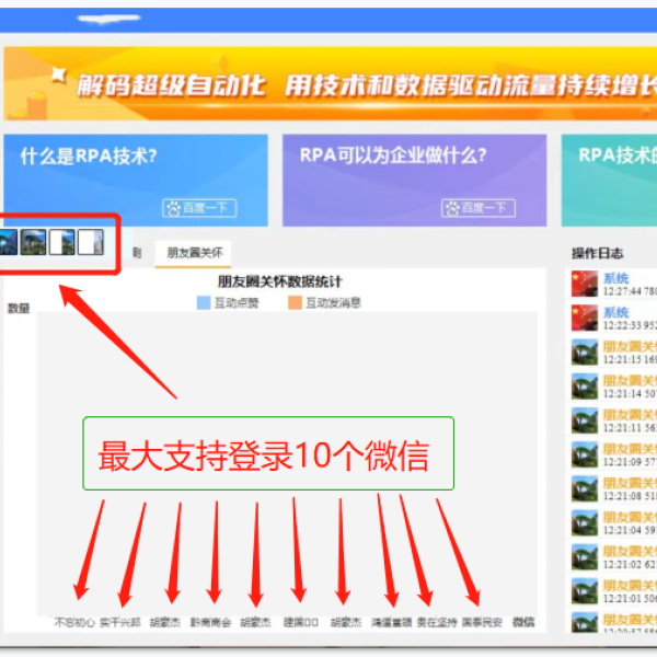 例如,你有 5个微信号,想同时邀请好友进群一个微信群,每个微信号每天从早上 8 点到晚上 8 点,一共邀请50人,每 14 分钟左右邀请一个好友进群,那么, 5个微信号 1 天就邀请250人,10 个微信号 1 天就邀请 500 人。如果靠人工一个一个的操作,那就太累了,RPA 自动化模拟人工操作,就可以帮你解决这个问题。